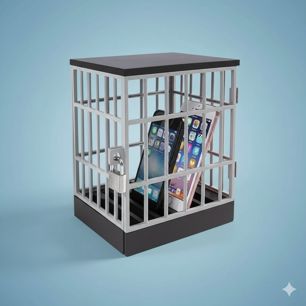 Phone Jail 🔒 – For Total Separation. A physical commitment to your time. Lock your phone away for a set period to be fully present during dinner, work, or relaxation. It’s a simple, visual reminder of your intention to disconnect.